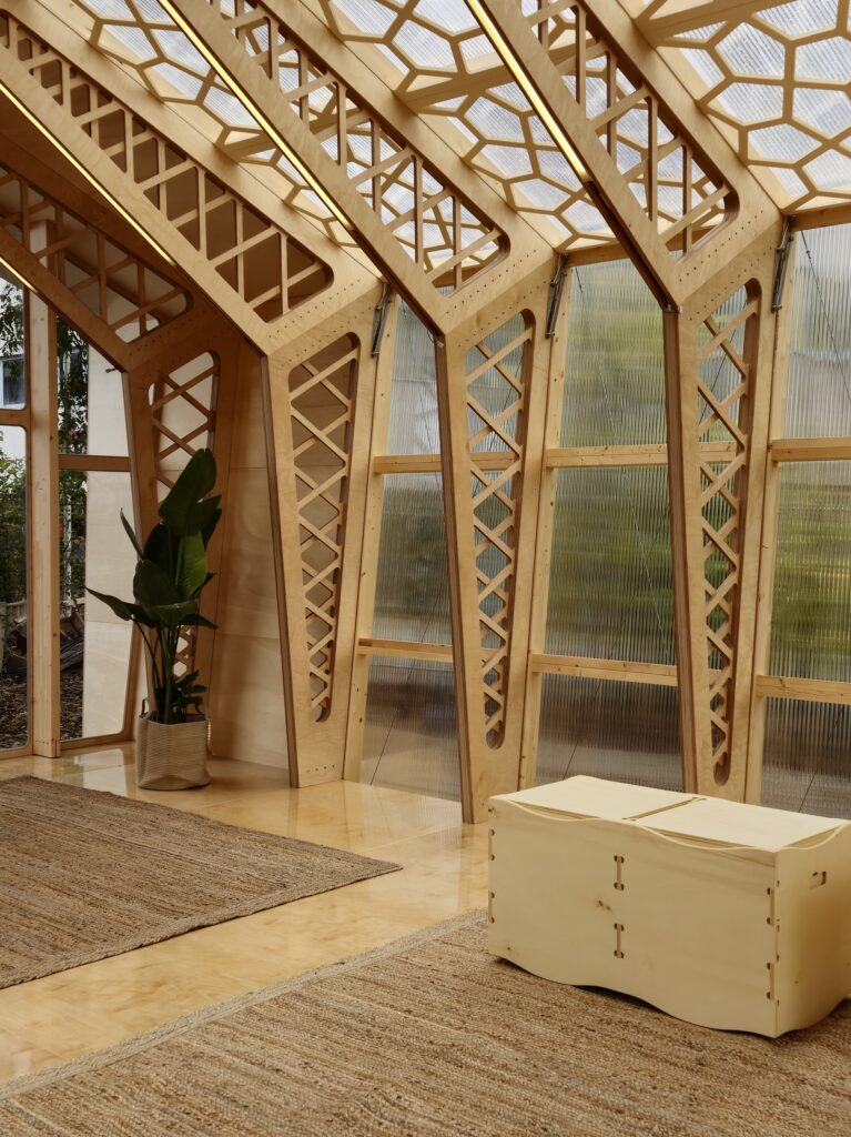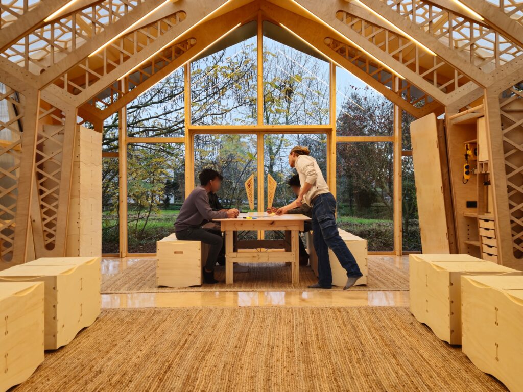 In 2024 we designed, engineered, and build a sustainable and demountable pavilion for unaccompanied minors in the Netherlands. This unique structure started collaboration with architecture students from TU Delft, who developed design proposals specifically tailored to the needs of this vulnerable age group. Together with Centraal Orgaan opvang asielzoekers (COA) and the European Asylum, Migration and Integration Fund (AMIF), we developed this pilot project in Leidschendam.