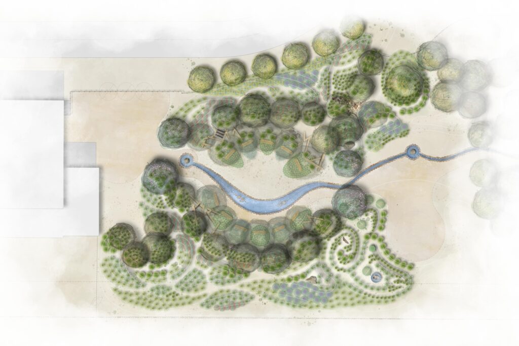 Since 2018, ONE has been designing and building therapeutic healing spaces for children in need. We take responsibility for the entire process from the initial concept phase, detailed engineering, calculations, to actual construction on-site with local materials and the help of volunteers. We create unique architectural spaces attuned to the present contextual challenges.